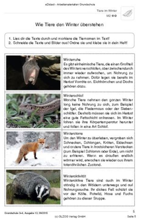Schulprobe Lernzielkontrolle Klassenarbeit Tiere Im Winter
