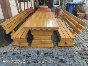 Holz Sitzgruppe Rustikal Biertischgarnitur Kiefer Massiv Gastronomie Gartenmobel