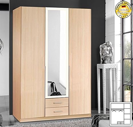 Kleiderschrank 734017 Schrank Mit Spiegel Canyon Buche Weiss 135cm 3 Turig Amazon De Kuche Haushalt